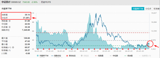 A股医疗板块此前连年走低,尽管今年显著修复,但价格及估值仍处于历史低位,安全边际较高。例如,医疗ETF(512170)标的指数最新PE估值35.1倍,低于近10年60%以上时间区间,具备较高配置性价比。